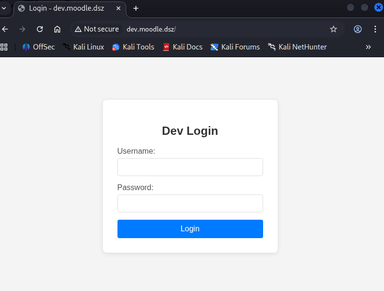 :: Progress: [114442/114442] :: Job [1/1] :: 1136 req/sec :: Duration: [0:01:52] :: Errors: 0 ::有个 dev 的子域名,我们也添加一下 dev.moodle.dsz